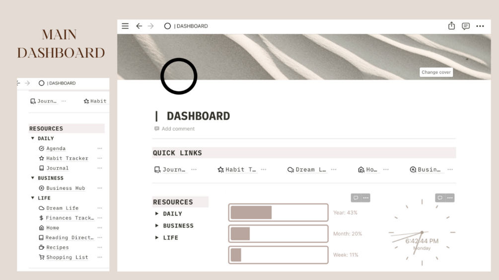 The ultimate all-in-one Notion Dashboard that will allow you to thrive in all areas of your life and business.
